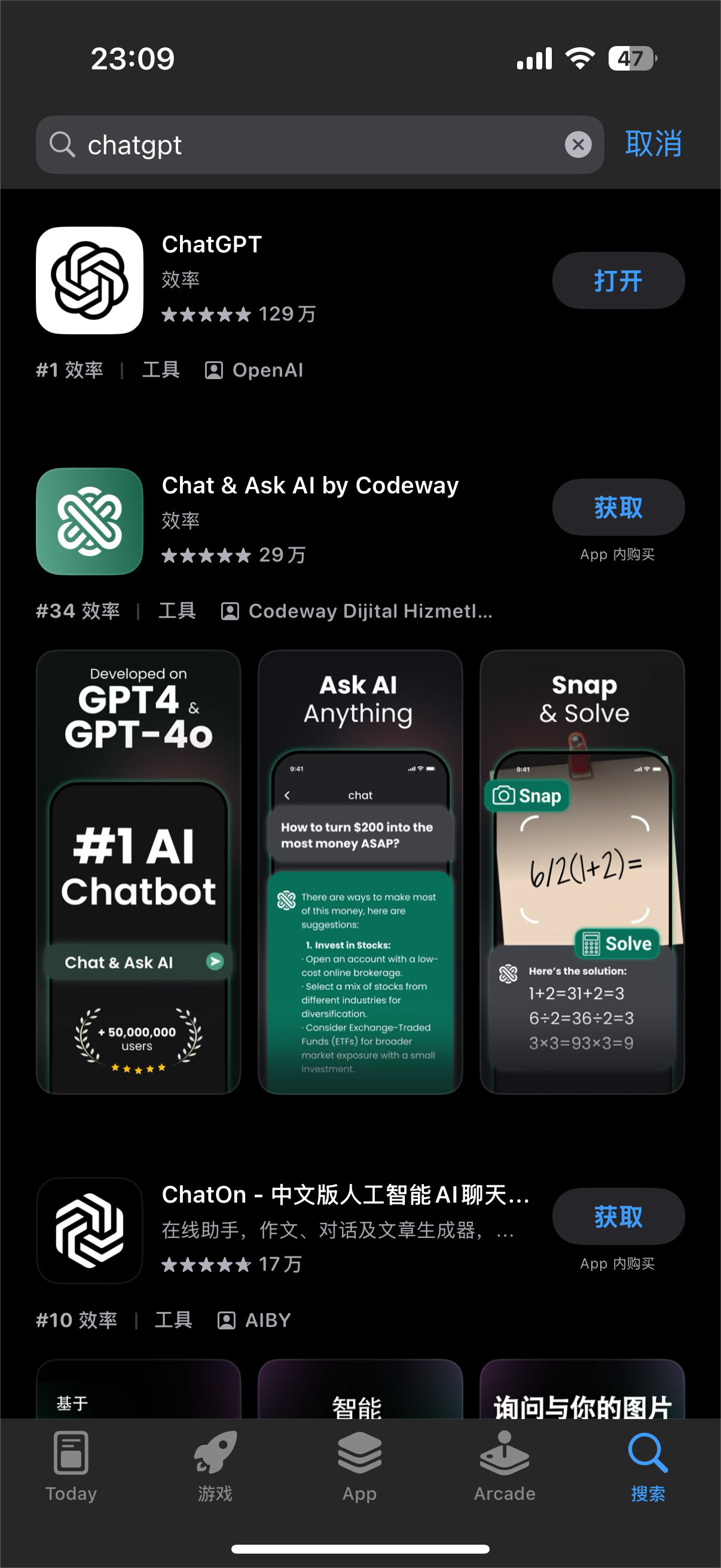 搜索chatgpt,这里要注意甄别,许多山寨、假的app。