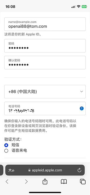 - 手机号:填写你自己的真实手机号即可,即使这个手机号注册过国区
