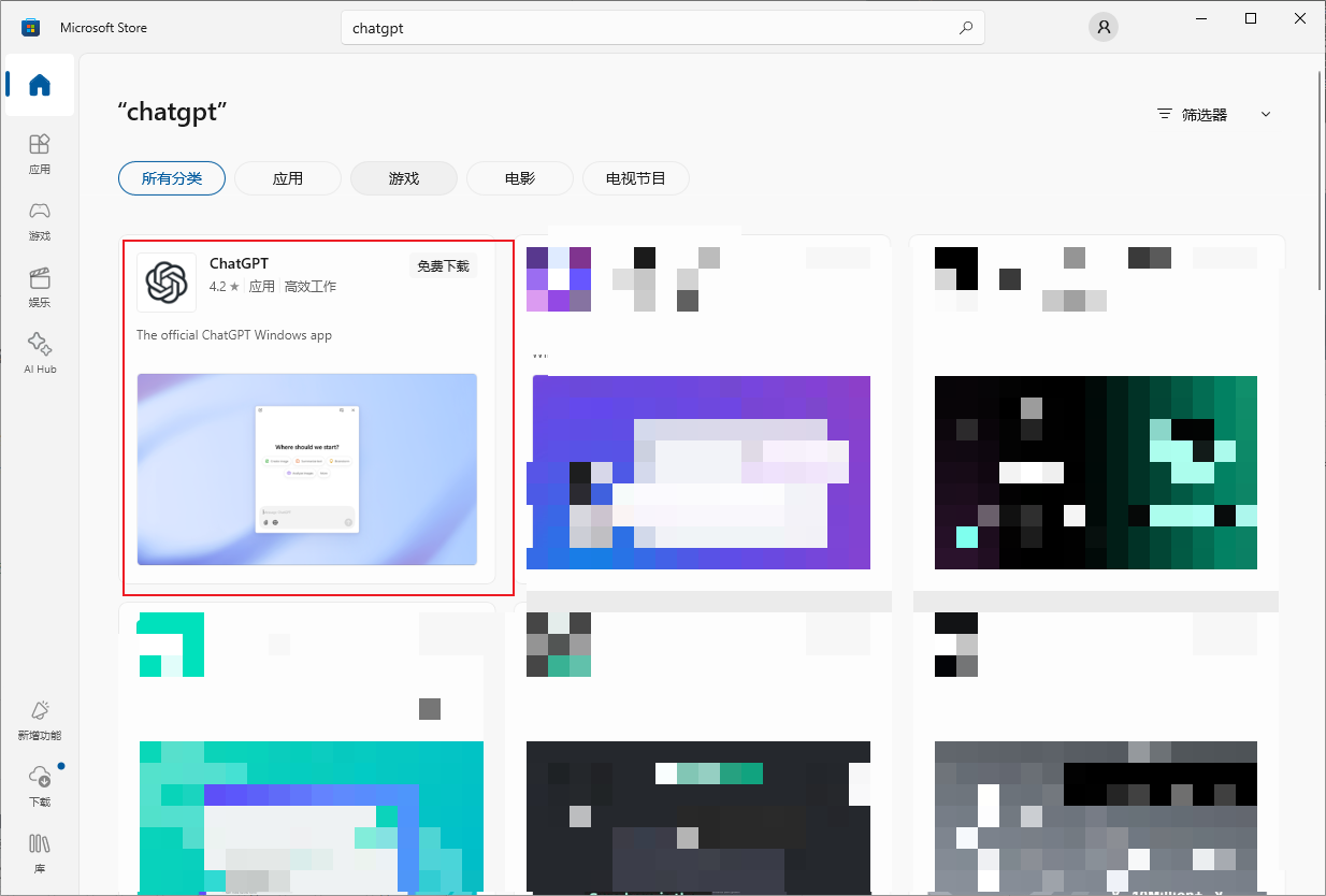 - 在Microsoft Store中搜索 ChatGPT