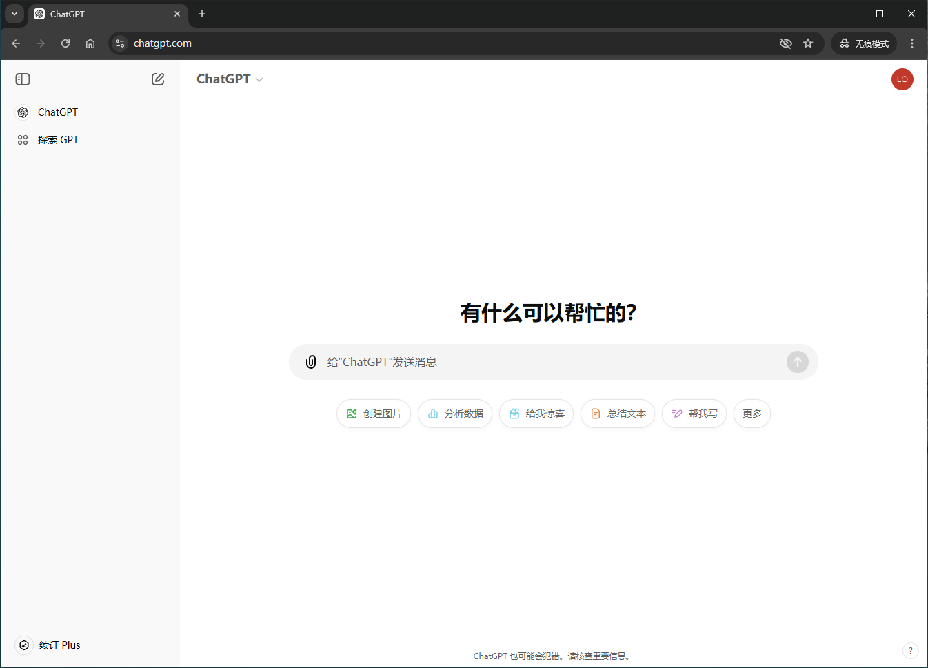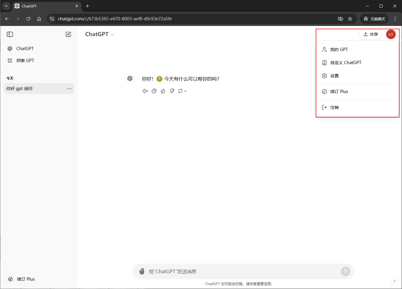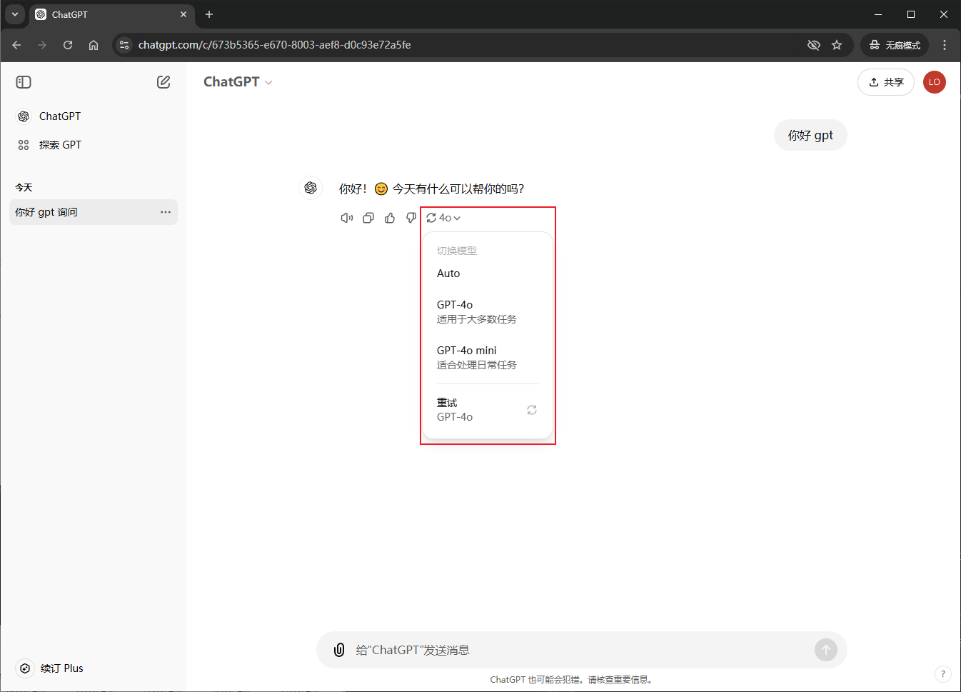可以切换对话模型(Plus账号才有模型选择)