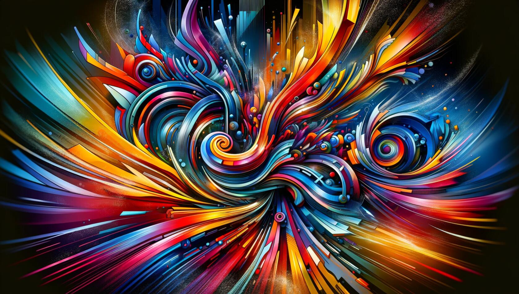 超级抽象风格的数字艺术展示了充满活力的形状和图案动态交互。宽屏图