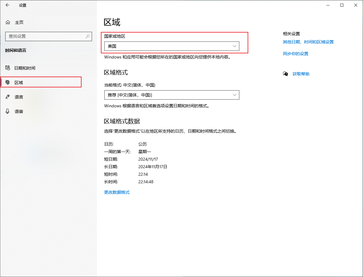 - 区域-国家或地区-改成美国
