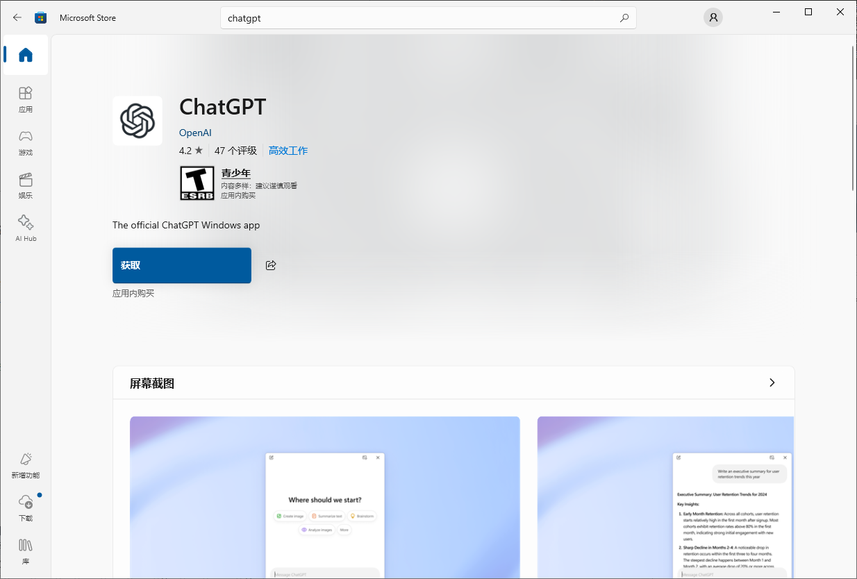 - 在Microsoft Store中搜索 ChatGPT