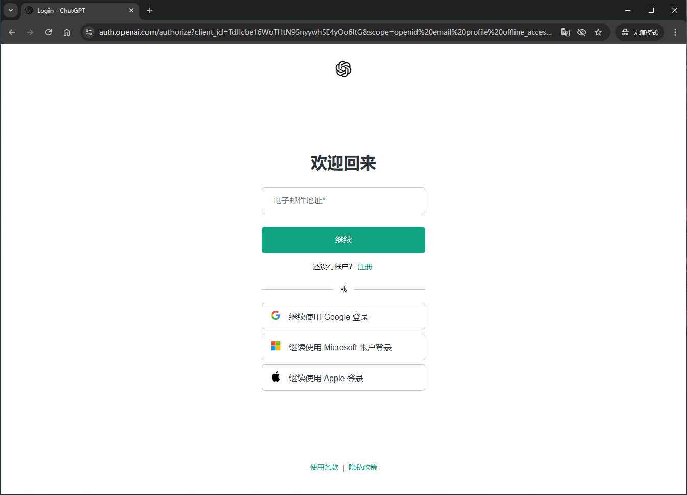- 输入ChatGPT账号密码