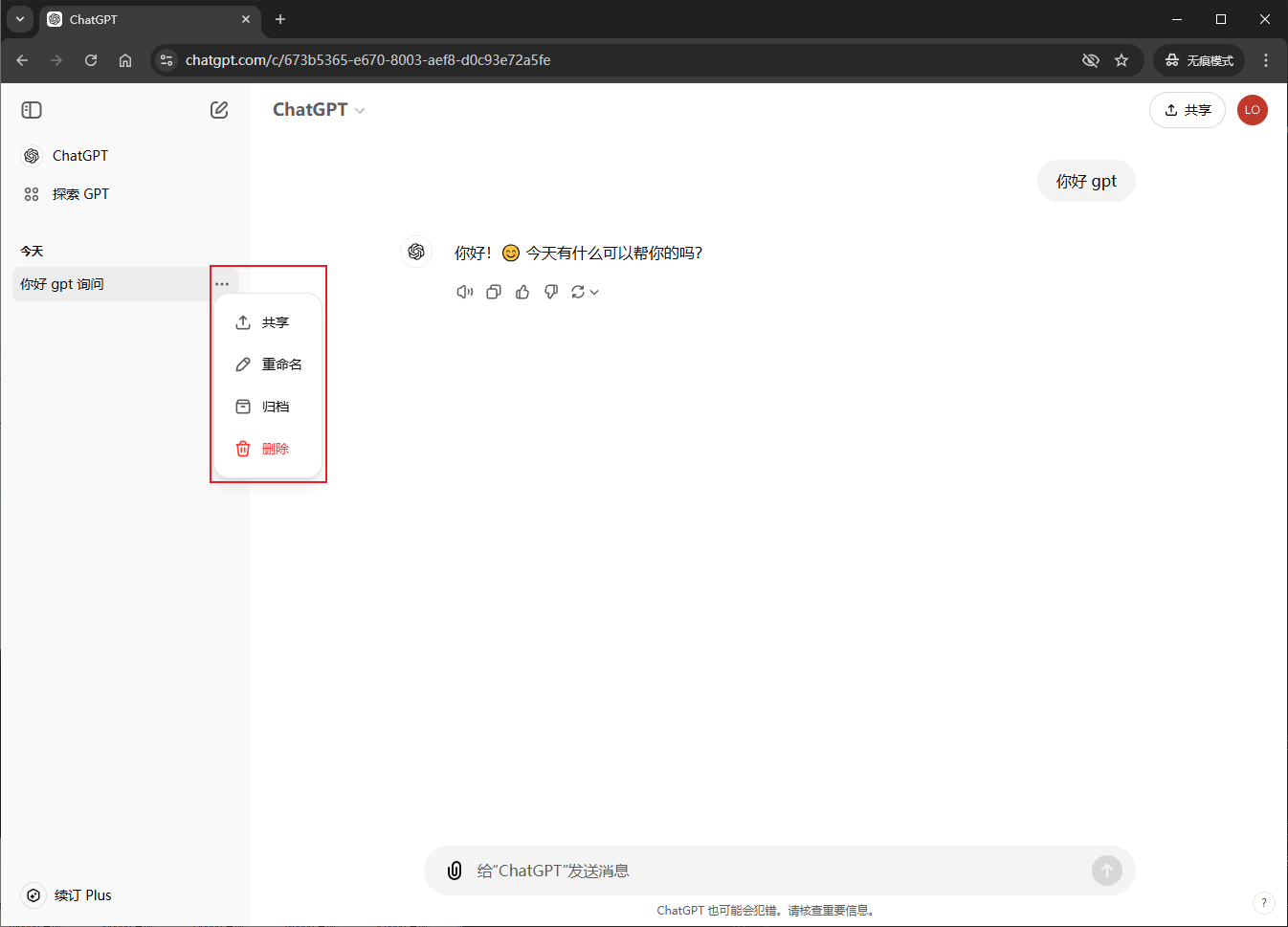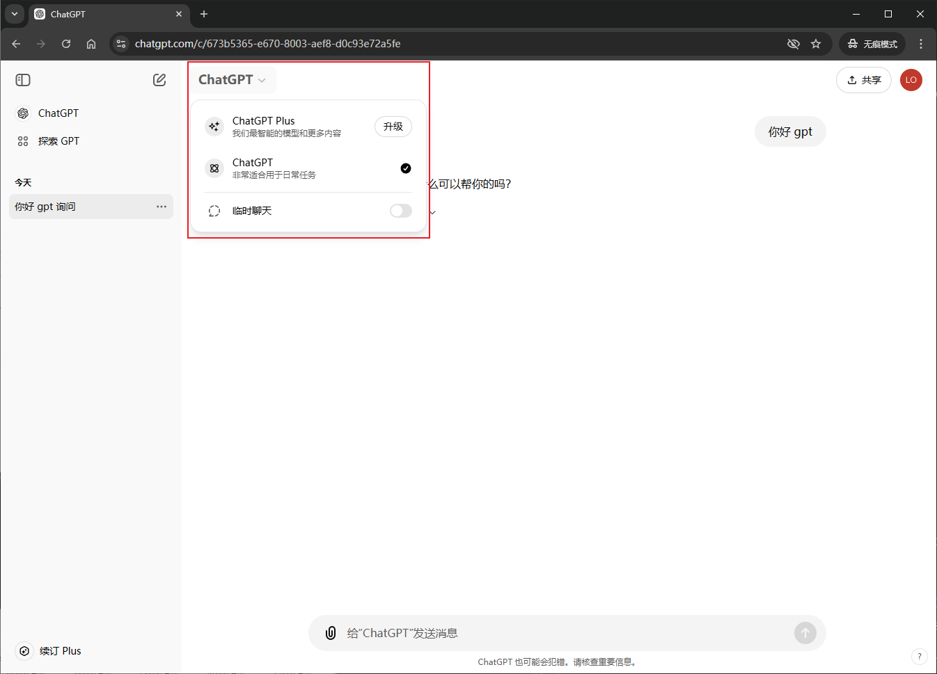可以切换对话模型(Plus账号才有模型选择)